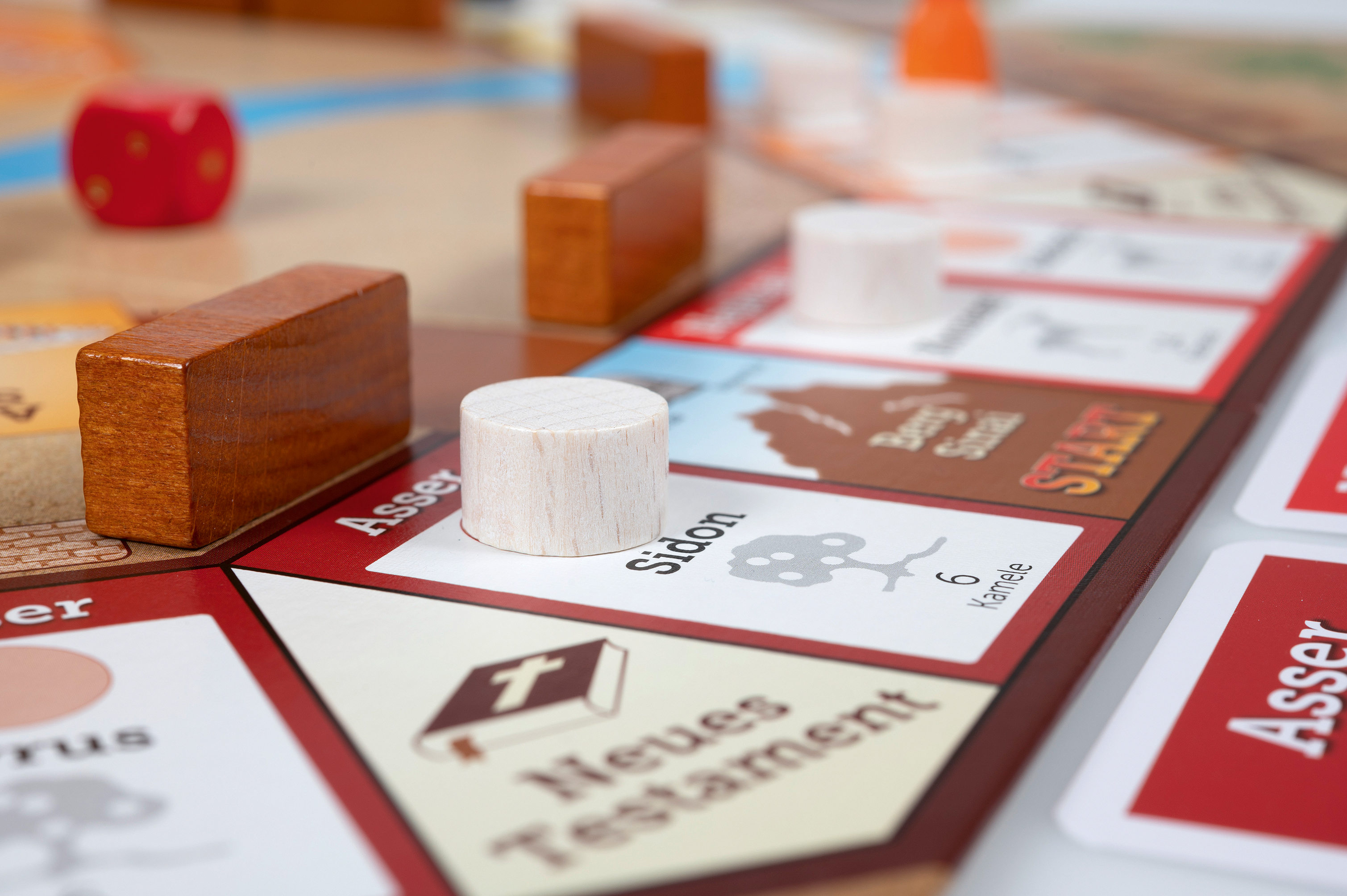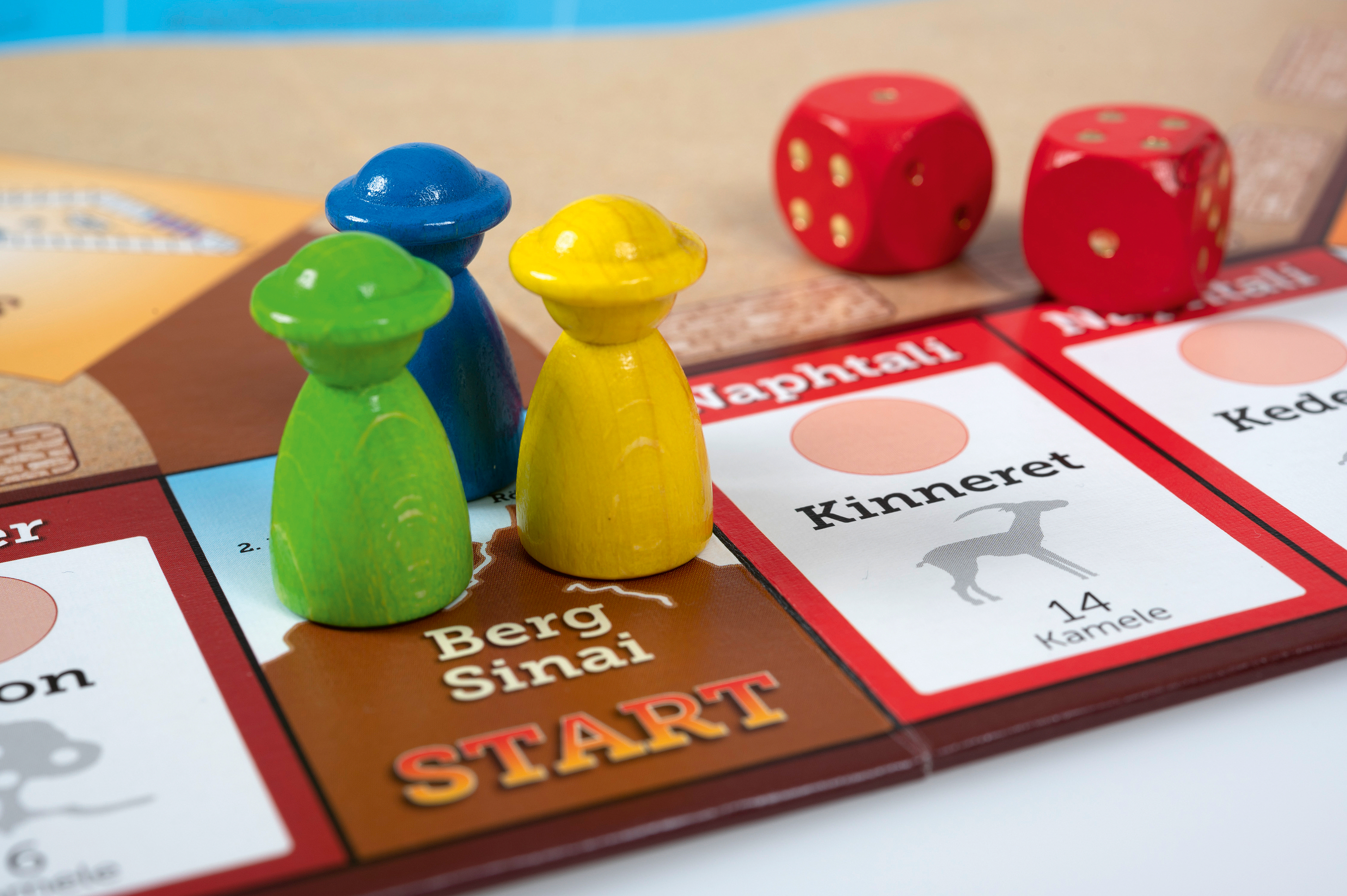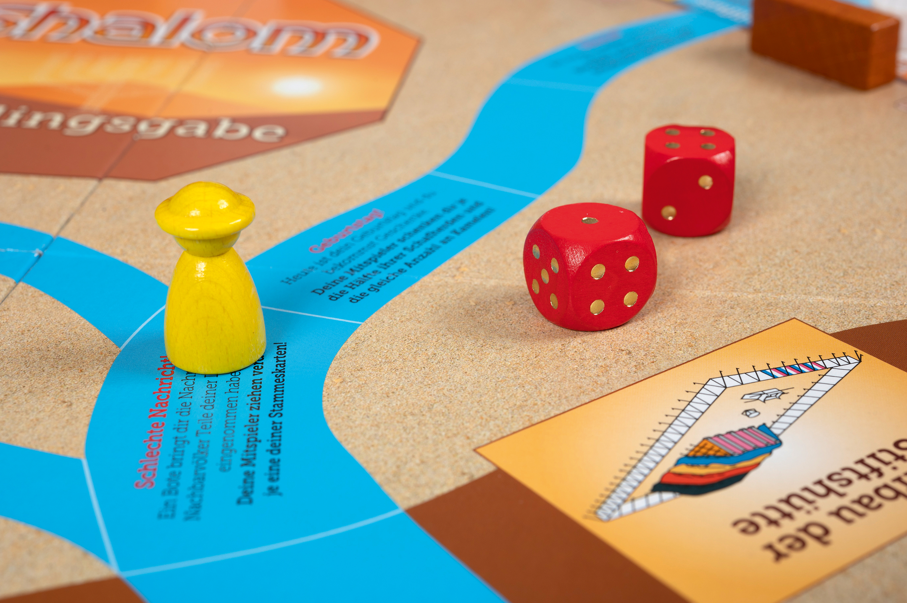 In „Shalom“ tauchen die Mitspieler ein in die Zeit der Wüstenwanderung des Volkes Israels und der Landeinnahme Kanaans. Als Mitglied der 12 Stämme kaufen Sie Städte, bauen Brunnen und Stadtmauern, aber bringen auch Opfer dar. Ziel des Spiels ist es, zu einem der größten Stämme zu werden, indem Sie z.B. die eigene Schaf- und Kamelherde vergrößern. Ganz nebenbei wird spielerisch biblisches Wissen aus dem Alten und Neuen Testament vermittelt. (2-6 Spieler, ab 9 Jahren)